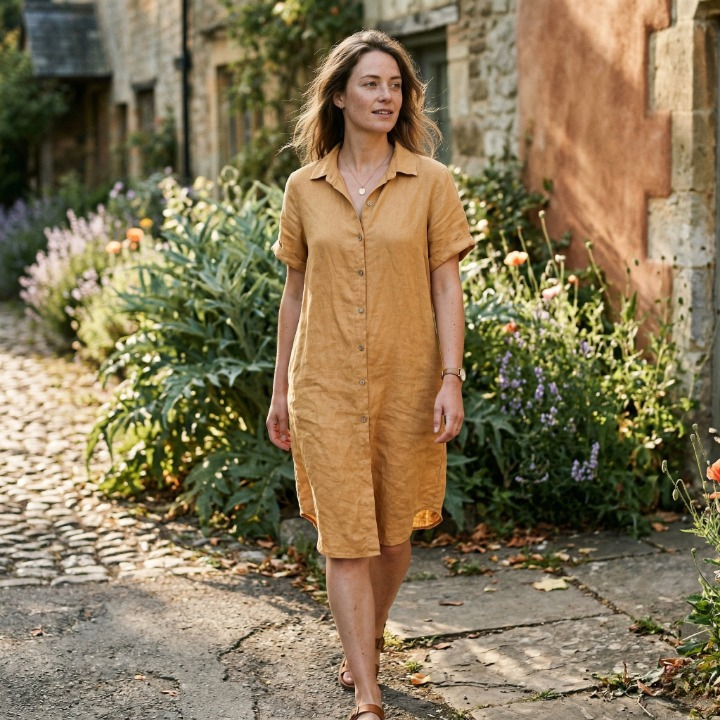 De blouse is gemaakt van een kwalitatief hoogwaardige 100% puur linnen stof van Europese afkomst, door de van nature ademende eigenschappen van linnen is deze stof koel te dragen in de zomer.