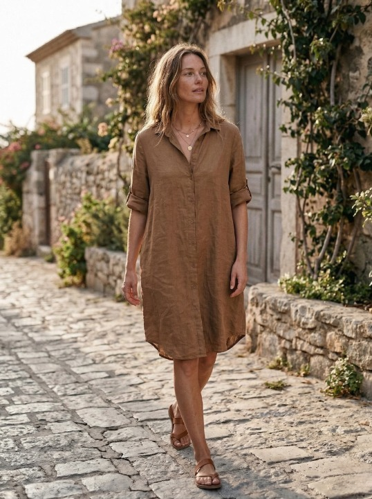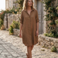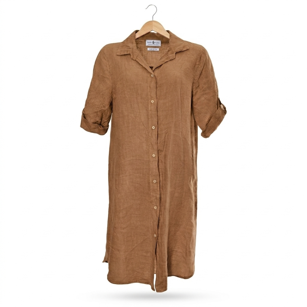 Linnen blouse lang met lange mouwen – Camel