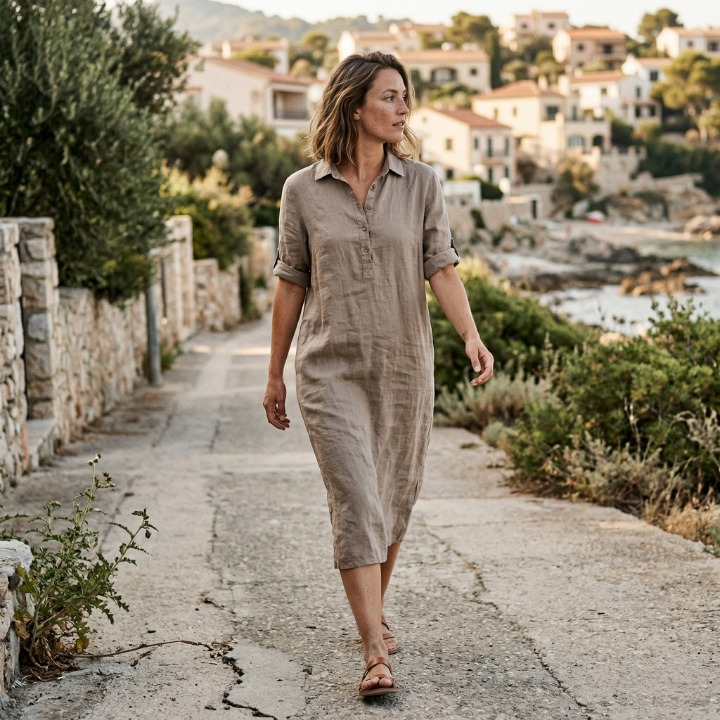 De zachte kwaliteit en luchtige stof zorgen ervoor dat de jurk comfortabel draagt, zelfs op warme dagen. Dankzij de natuurlijke eigenschappen van linnen voelt de stof koel aan en ademt deze goed.