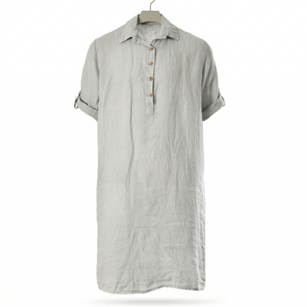 De zachte kwaliteit en luchtige stof zorgen ervoor dat de jurk comfortabel draagt, zelfs op warme dagen. Dankzij de natuurlijke eigenschappen van linnen voelt de stof koel aan en ademt deze goed.