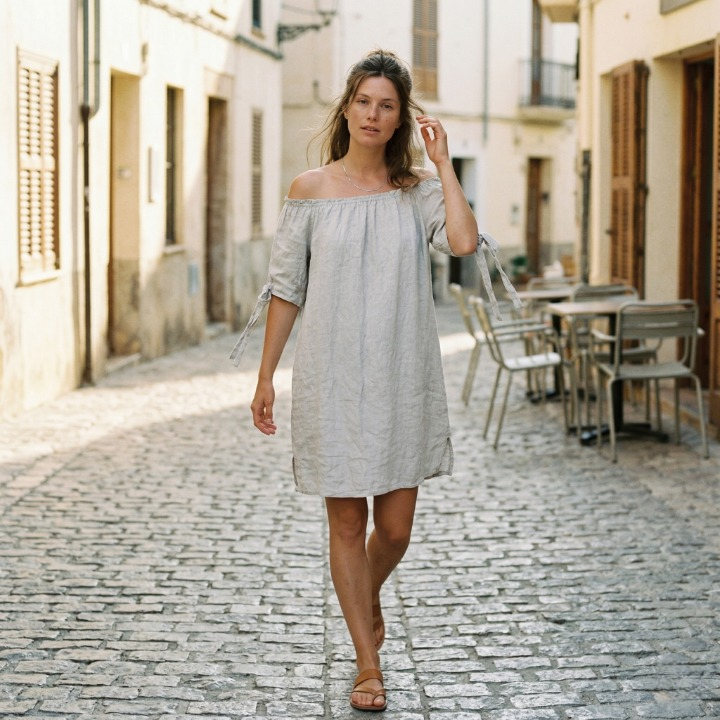 Het tuniekje is van een hoogwaardige 100% puur linnen kwaliteit van Europese afkomst.