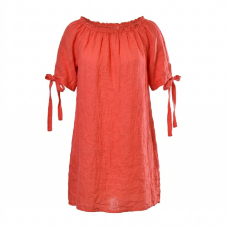 Linnen tuniek met elastische boord koraal